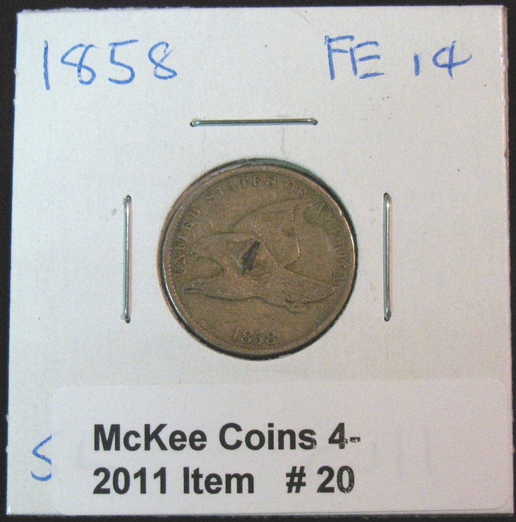 20. 1858 U.S. Flying Eagle Cent. Heavy damaged.
