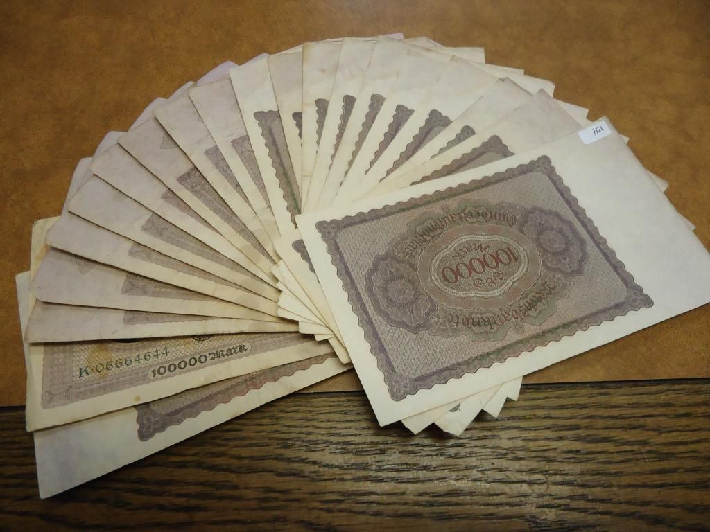 20 1923 GERMAN 100,000 MARK INFLATION NOTES