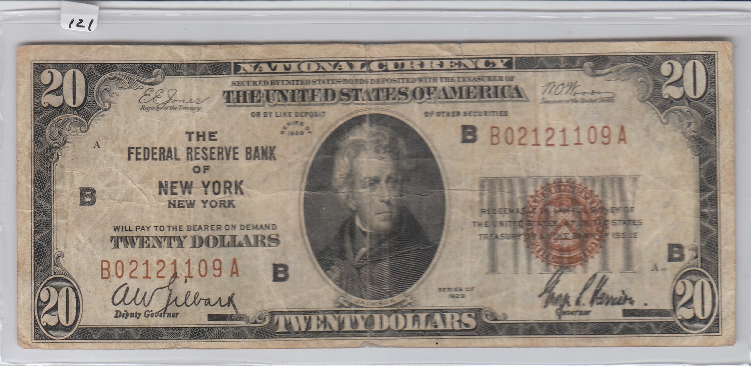 $20 1929 FRBN CURRENCY NEW YORK
