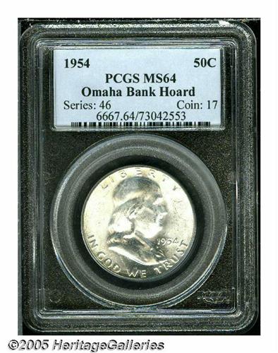 <B>(20) 1954<50C> MS64 PCGS.</B></I> Ex: Omaha Bank Hoard. Gently toned in golden-brown colors, this lustrous grouping possesses several crisply struck pieces that approach a Full Bell Lines designation. One of the coins has wispy slide marks on Franklin's coat.