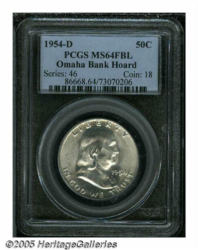 <B>(20) 1954-D<50C> MS64 Full Bell Lines PCGS.</B></I> Ex: Omaha Bank Hoard. A carefully preserved original roll, the pieces have pleasing luster and are generally devoid of unpleasant marks. The near-Gems are gently to moderately patinated in blushes of tan-gold color.