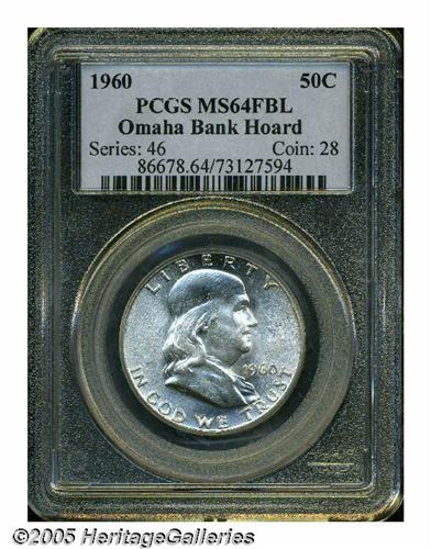 <B>(20) 1960<50C> MS64 Full Bell Lines PCGS.</B></I> Ex: Omaha Bank Hoard. A couple of the near-Gems have peripheral olive and apricot color, and several have a few faint milk spots, although most pieces are close to brilliant. A crisply struck, lustrous, and carefully preserved grouping.