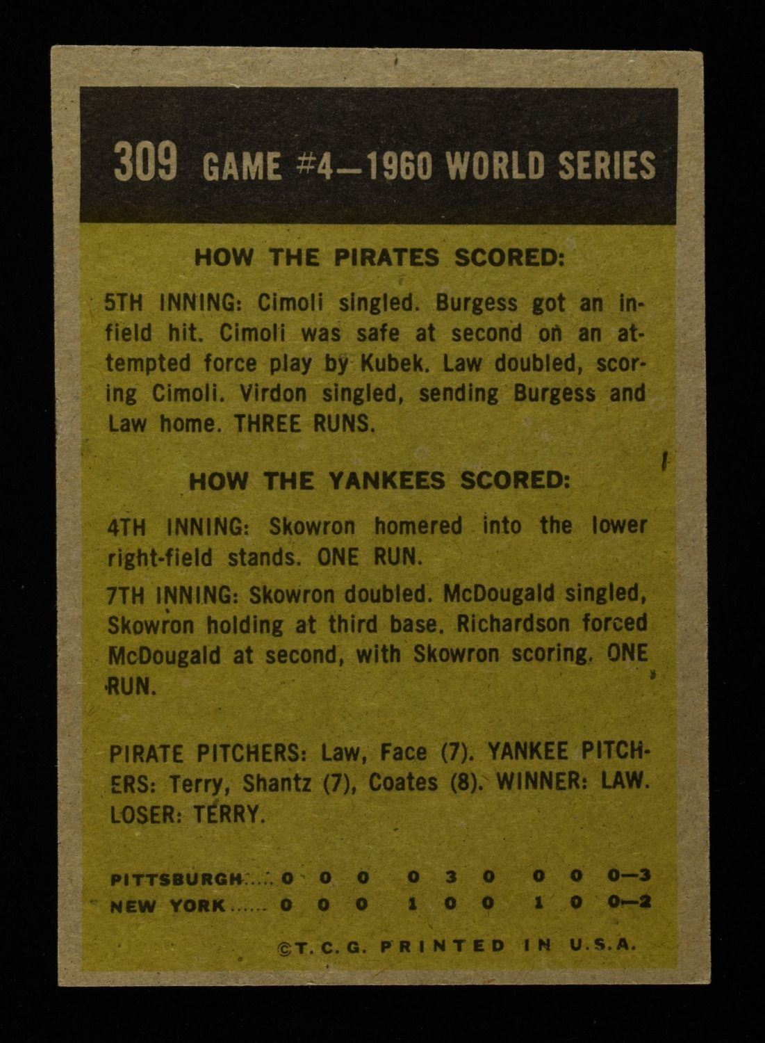 INCLUDING: #360 ROBINSON, #309 GAME 4 W.S., #80 KILLEBREW, #312 GAME 7 W.S., #63 KART, #402 LARSEN PERFECT GAME, #82, #122, #131, #190, #233, #237, #239, #241, #247, #252, #254, #255, #258, & #261 ESTIMATE $90 -