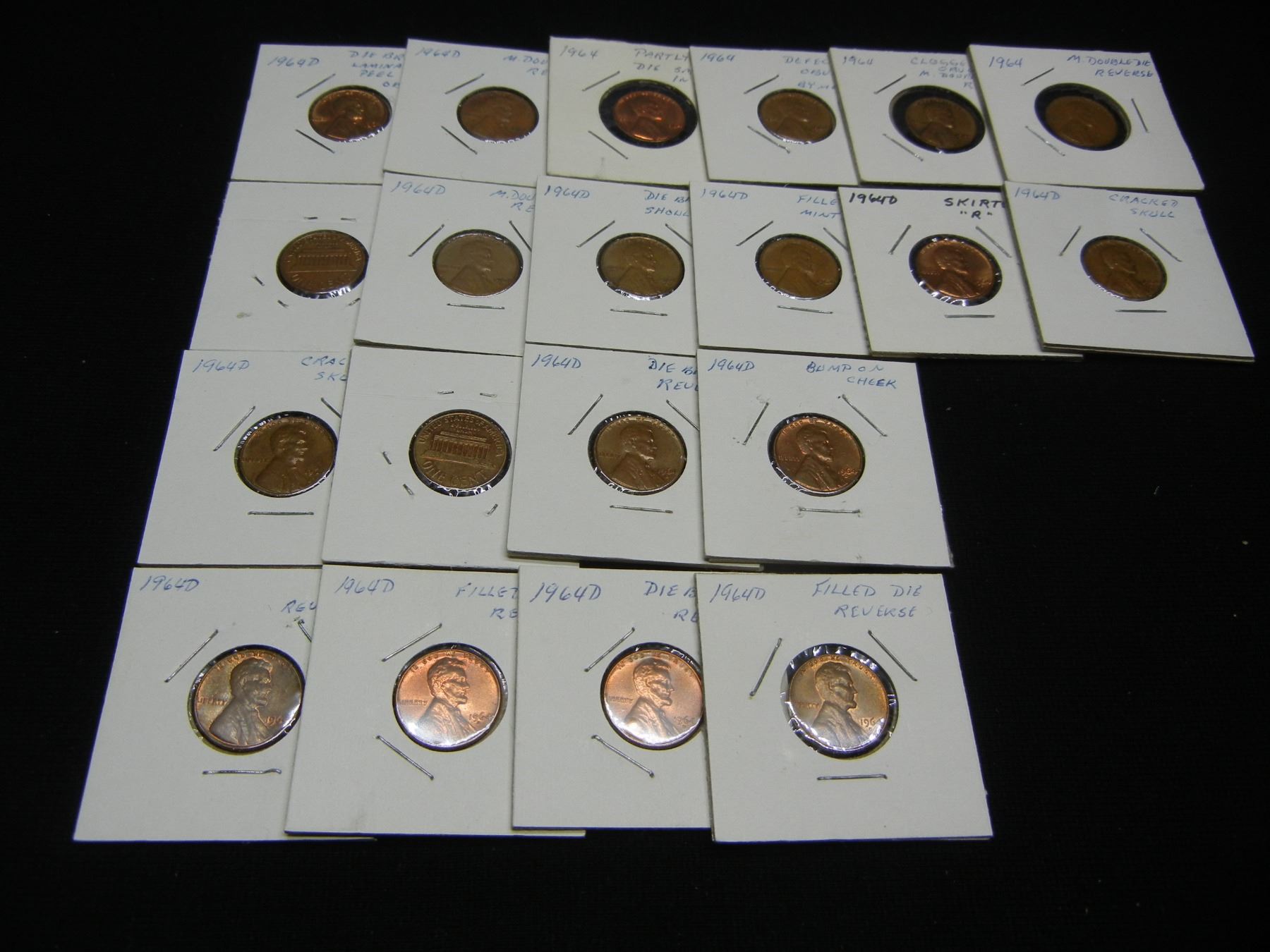 (20) 1964 Lincoln Cent Minor Errors Part of a Large Collection of Errors