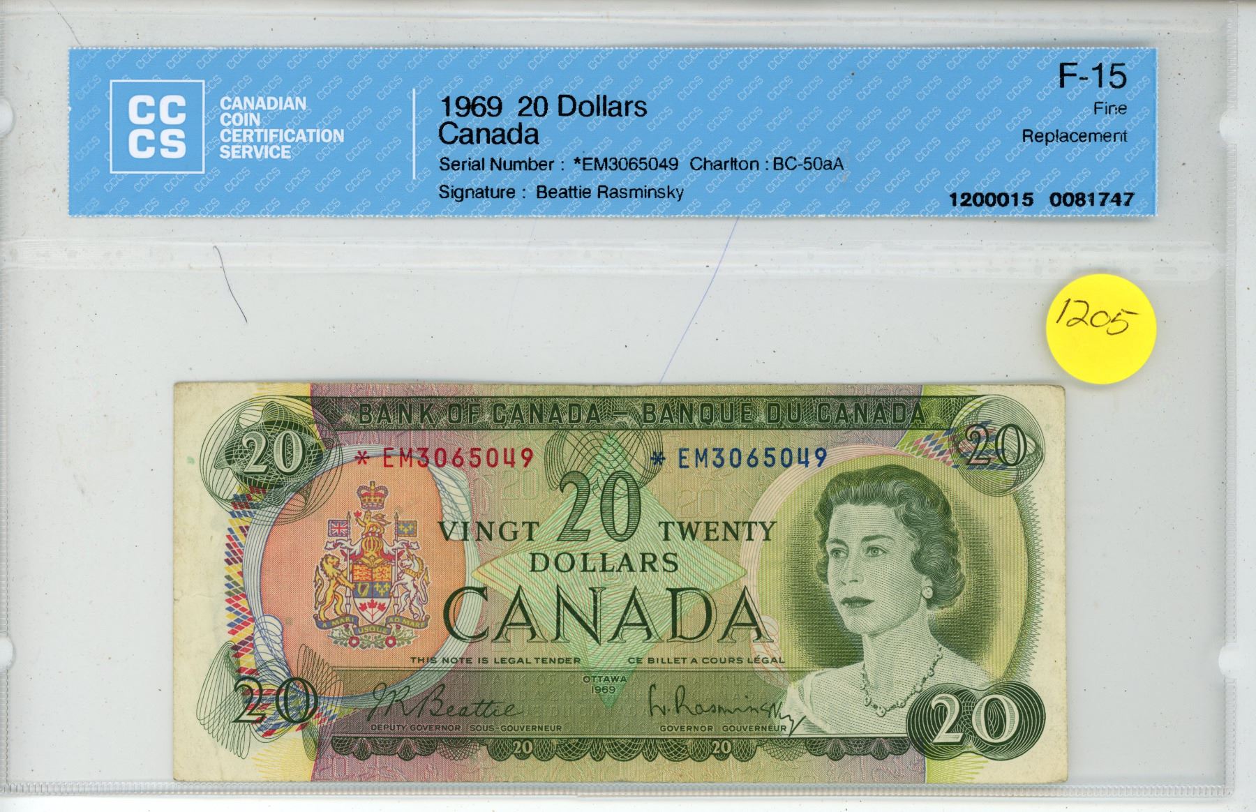 $20 1969 Canadian Note F-15 - CCCS - Graded