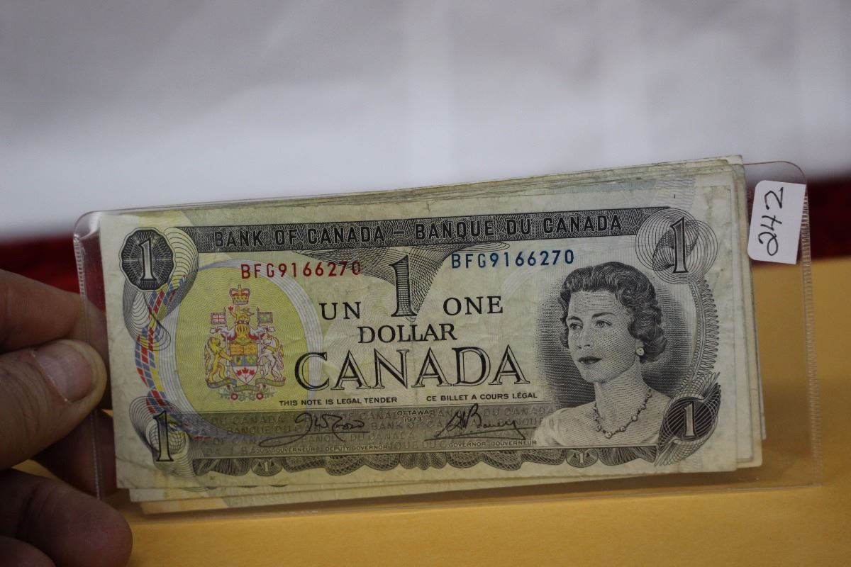 20 - 1973 Cdn. One Dollar Bills - Circulated - VG or Better