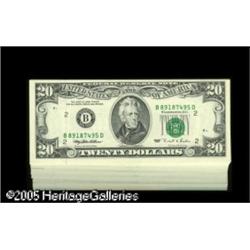 <B>$20 1995, 1996, 1999, 2001, 2004 Federal Reserve Notes. Choice Crisp Uncirculated or Better.</B></I><BR>This $1280 face lot contains one 1995 star and nine 1996 stars from eight different districts. The duplicated 1996 H* grades VF. If you are thinking about collecting recent Twenties by block, this lot is for you.<BR> 64 notes Lot:16180