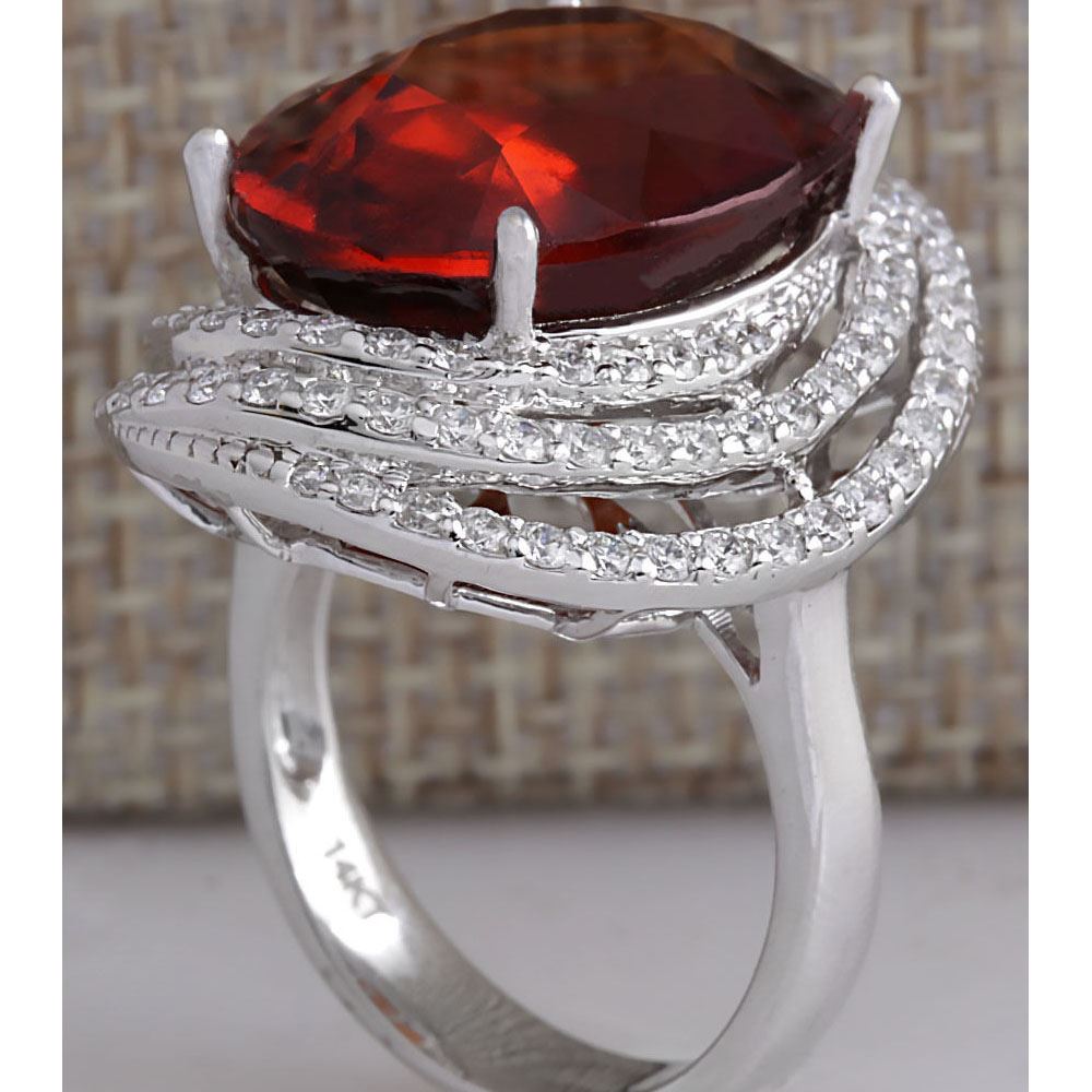 20.25CTW Natural Hessonite Garnet And Diamond Ring In 14K White Gold