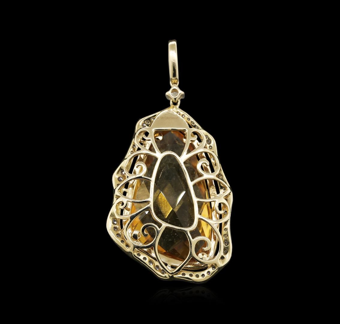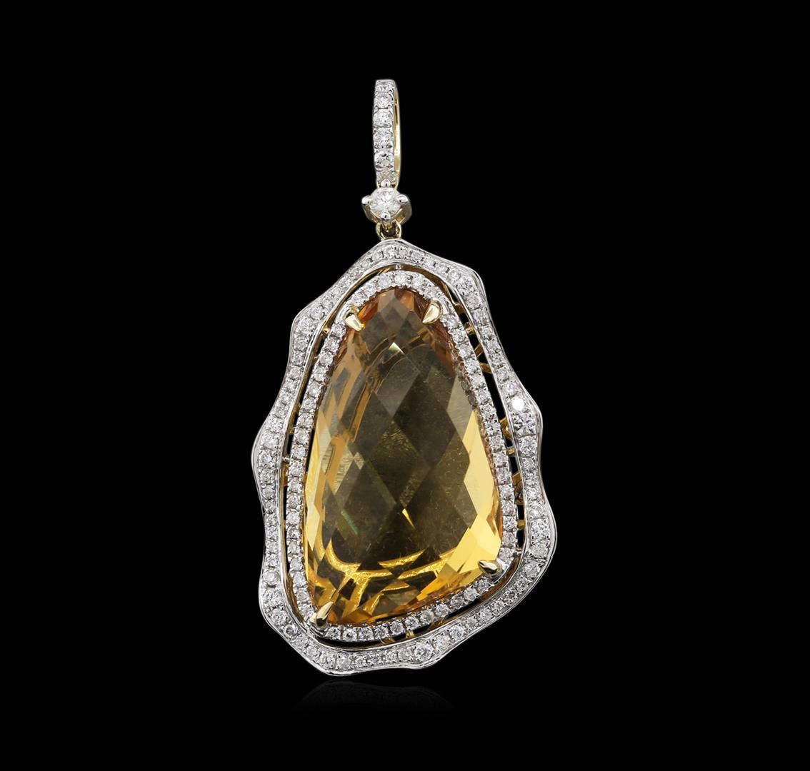 One pendant featuring: 14KT yellow gold weighing 5.60 grams containing one citrine with a total weight of 20.26ct and diamonds with a total weight of 0.79ct.