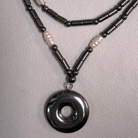 HEMATITE NECKLACE. LENGTH: 16 INCHES. BEADS MEASURE: 20-3 MM