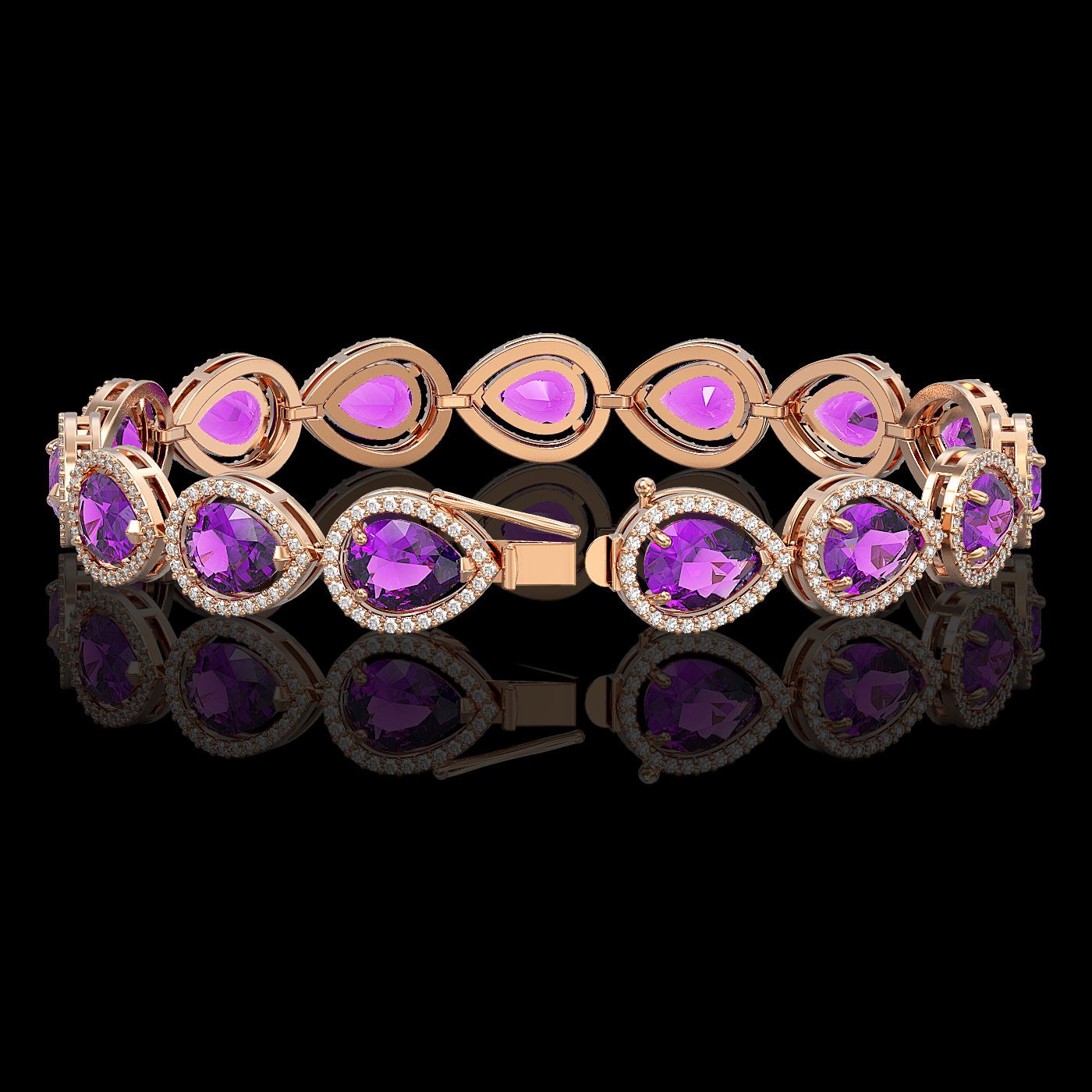 REF-282F9M - SKU: 41274 ---- 20.3 ctw Amethyst & Diamond Micro Pave Halo Bracelet 10k Rose Gold