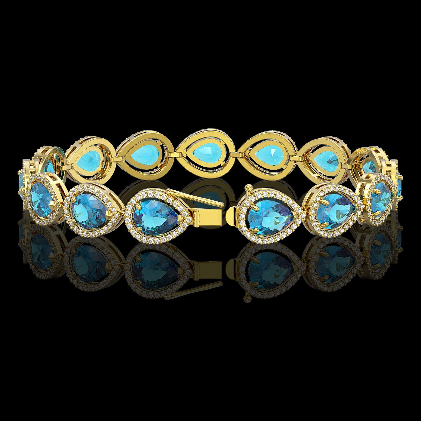 REF-286K2Y - SKU: 41269 ---- 20.3 ctw Swiss Topaz & Diamond Micro Pave Halo Bracelet 10k Yellow Gold