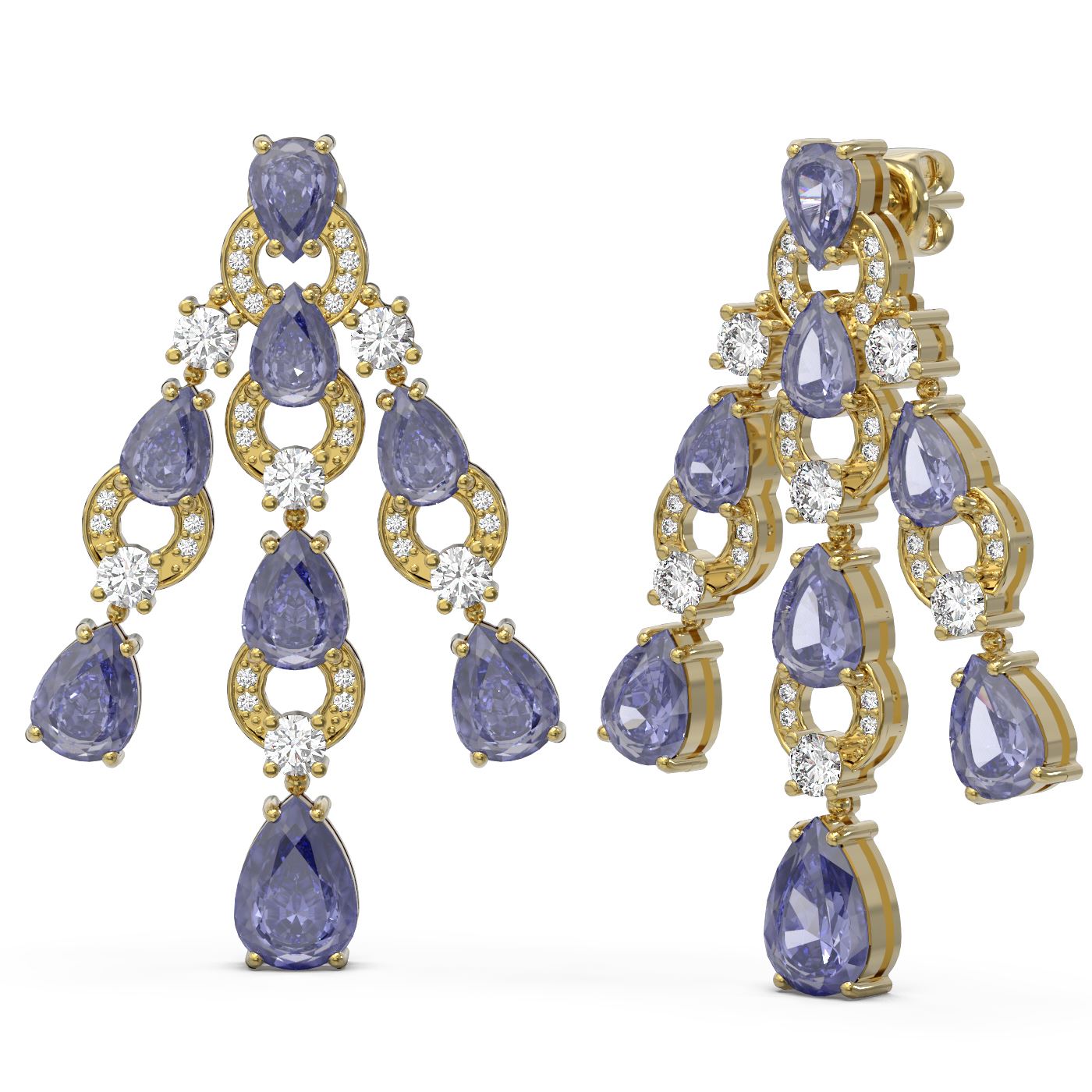REF-586Y2X - SKU: 51705 ---- 20.48 ctw Tanzanite & Diamond Earrings 18K Yellow Gold