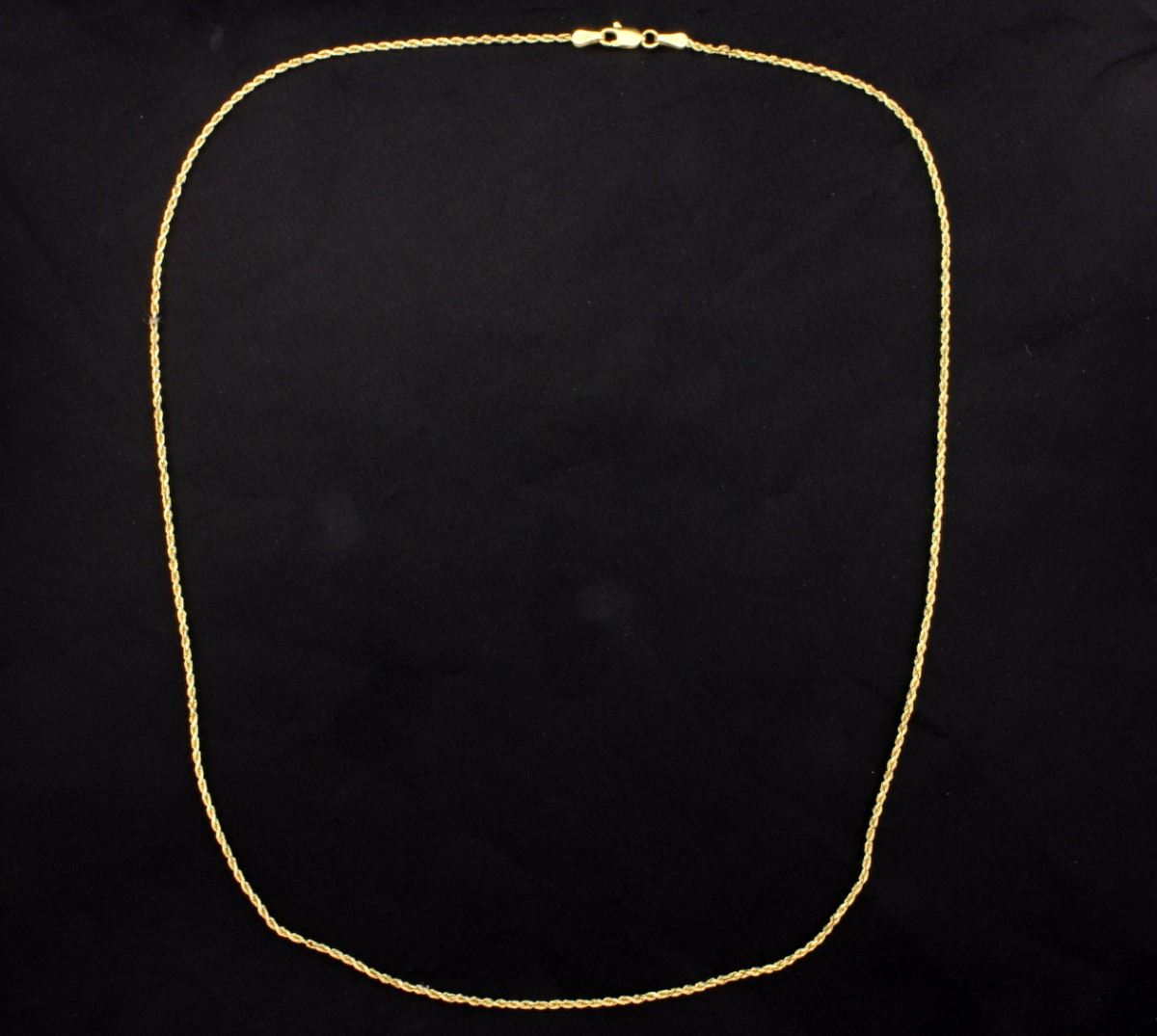 The chain is 14K yellow gold and is 1.5mm thick. With a lobster clasp. 4.2g