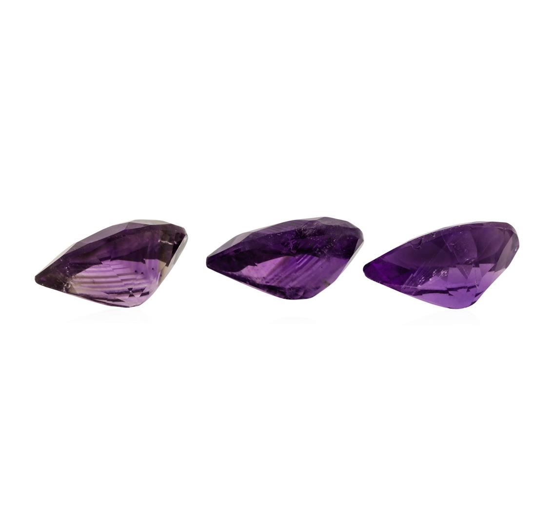 One natural pear cut amethyst parcel of three with an exact weight of 20.50ctw., clarity is moderately included, purple to v.s. brownish purple, medium to medium light. Gemological Appraisals Services estimates the retail value at $615 GAS Appraised.