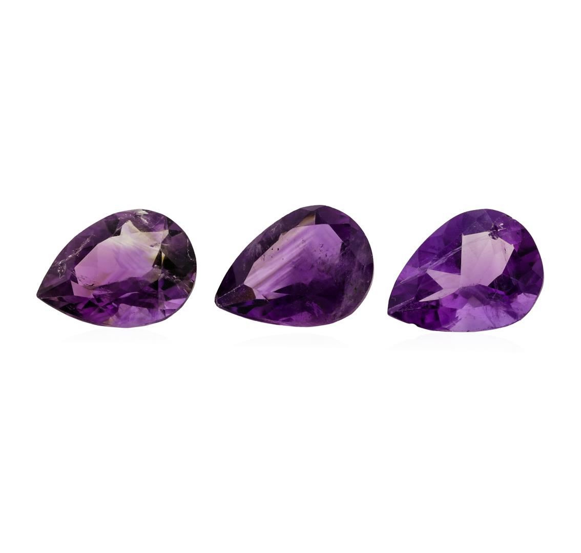One natural pear cut amethyst parcel of three with an exact weight of 20.50ctw., clarity is moderately included, purple to v.s. brownish purple, medium to medium light. Gemological Appraisals Services estimates the retail value at $615 GAS Appraised.