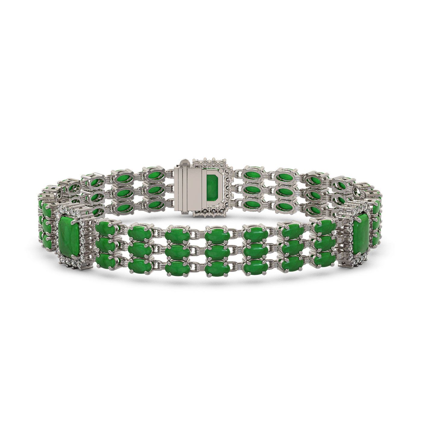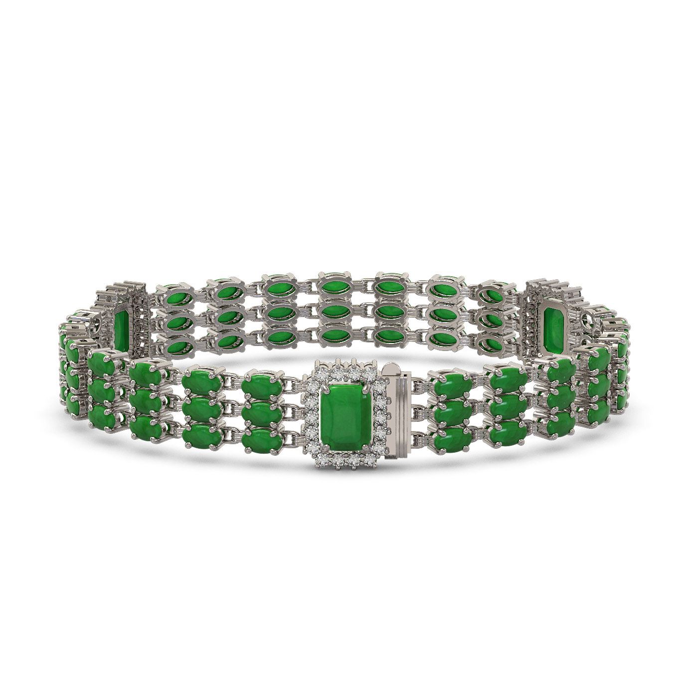 REF-294W5H - SKU: 45419 ---- 20.53 ctw Jade & Diamond Bracelet 14K White Gold