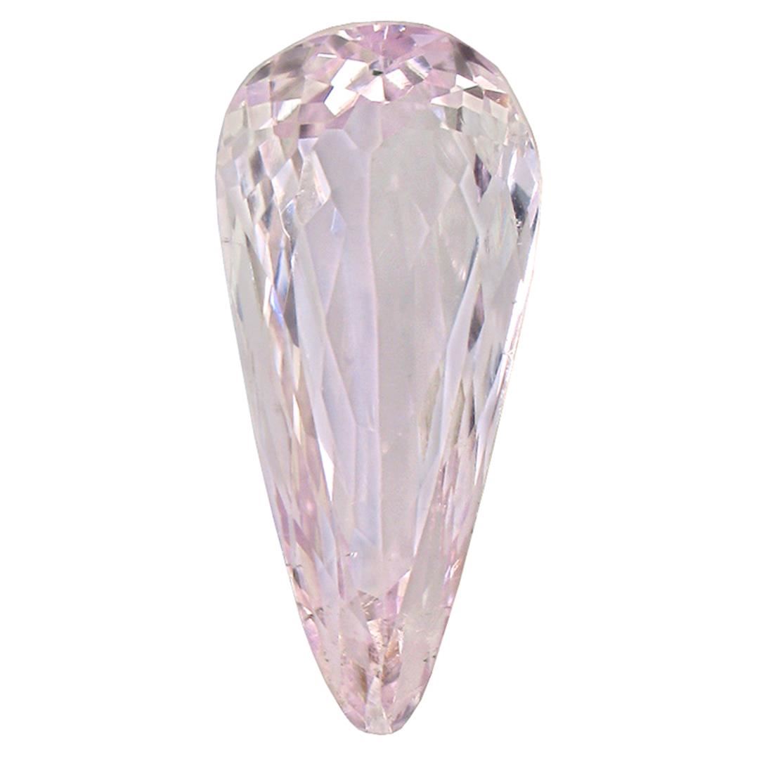 One pear mixed cut natural kunzite, measuring 26.00 x 12.00 x 9.00mm, exact weight 20.58ct., clarity is eye clean, type I, medium light, very slightly grayish, reddish purple color, (GIA rP 4/3), cut is good. Transmitting light with no distortion, transparent. Westfield Appraised at $5,705.00.