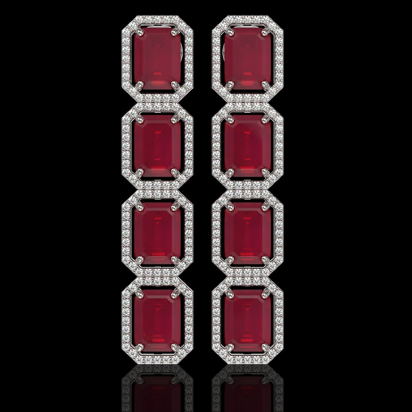 REF-230N9F - SKU: 41573 ---- 20.59 ctw Ruby & Diamond Micro Pave Halo Earrings 10k White Gold