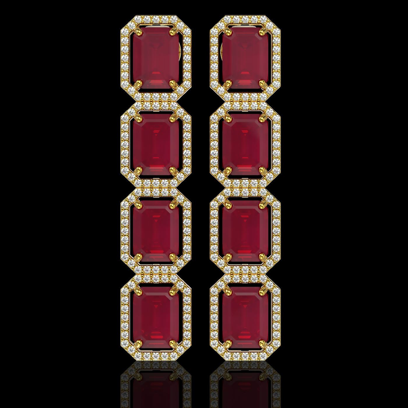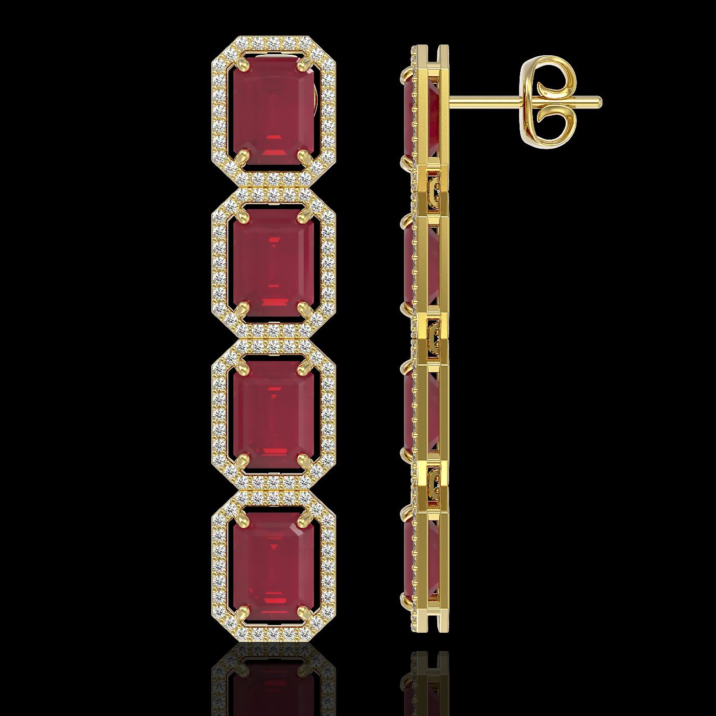 SKU: 41575 ---- 20.59 ctw Ruby & Diamond Micro Pave Halo Earrings 10k Yellow Gold