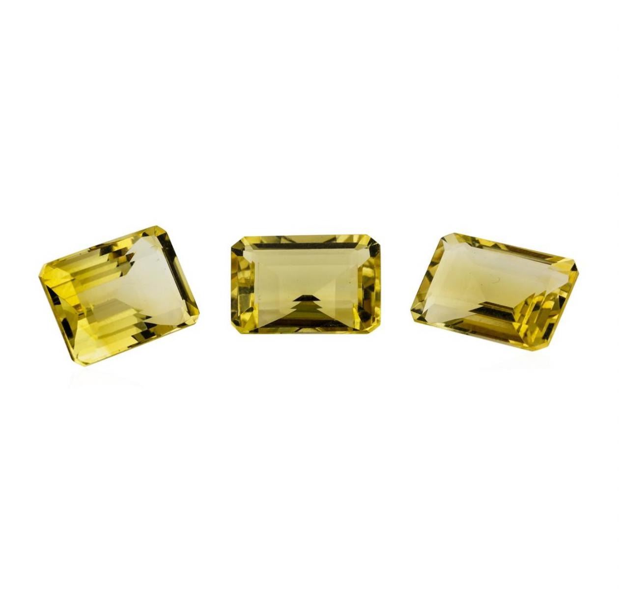 One natural emerald cut citrine quartz parcel of three with an exact weight of 20.63ctw., clarity is eye clean, slightly yellowish orange, medium to medium light. Gemological Appraisals Services estimates the retail value at $618.9 GAS Appraised.