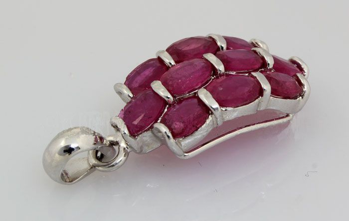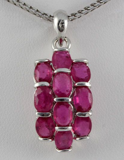 20.66CTW Pink Ruby Cluster Design Silver Pendant **|**|** Cluster of Oval Shape Pink Ruby in Silver Pendant; Size: 6x4mm; ctw: 6.00; stone count: 10; gram weight: 2.93 ; MSRP: $900