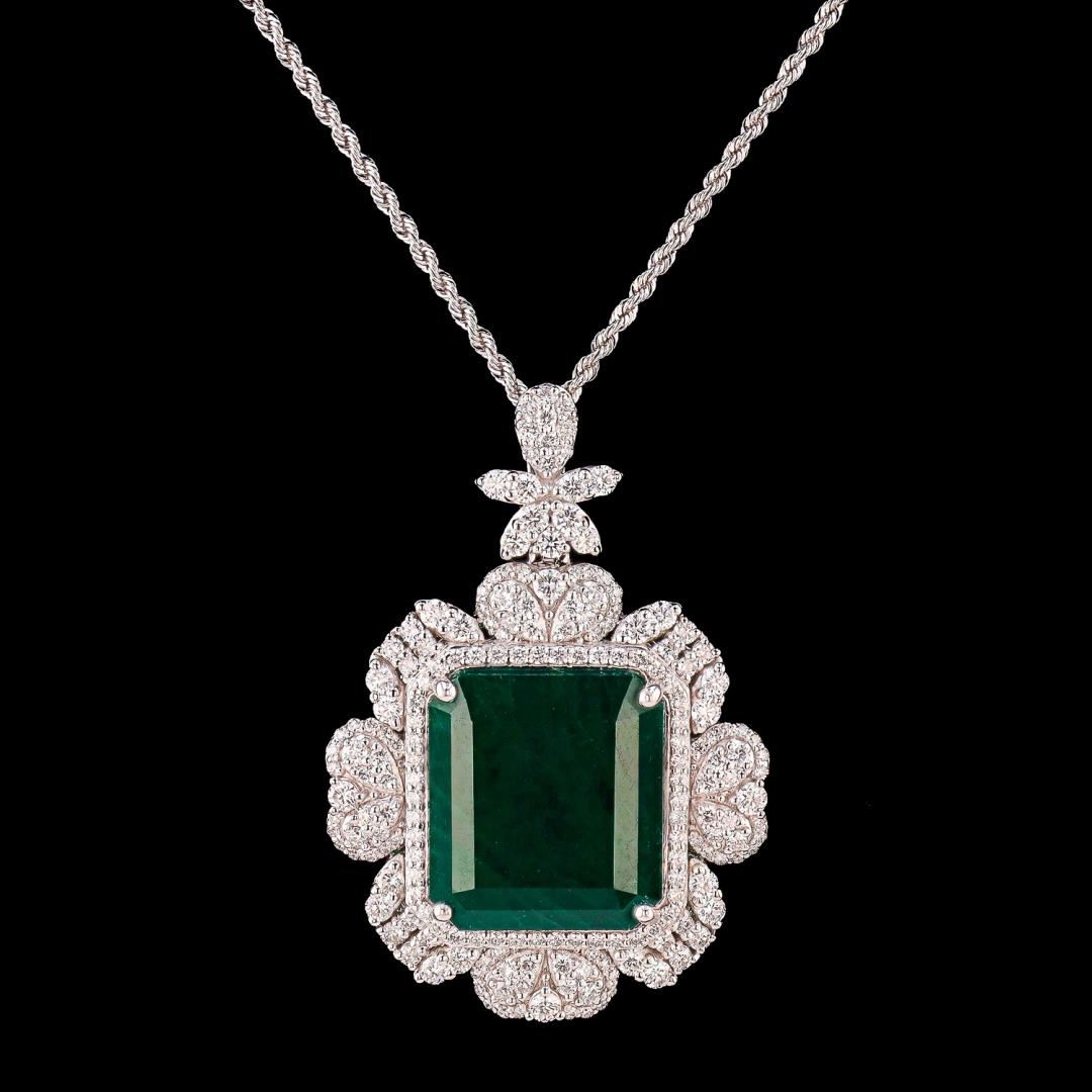 20.69 ctw Emerald and 3.08 ctw Diamond Platinum Pendant