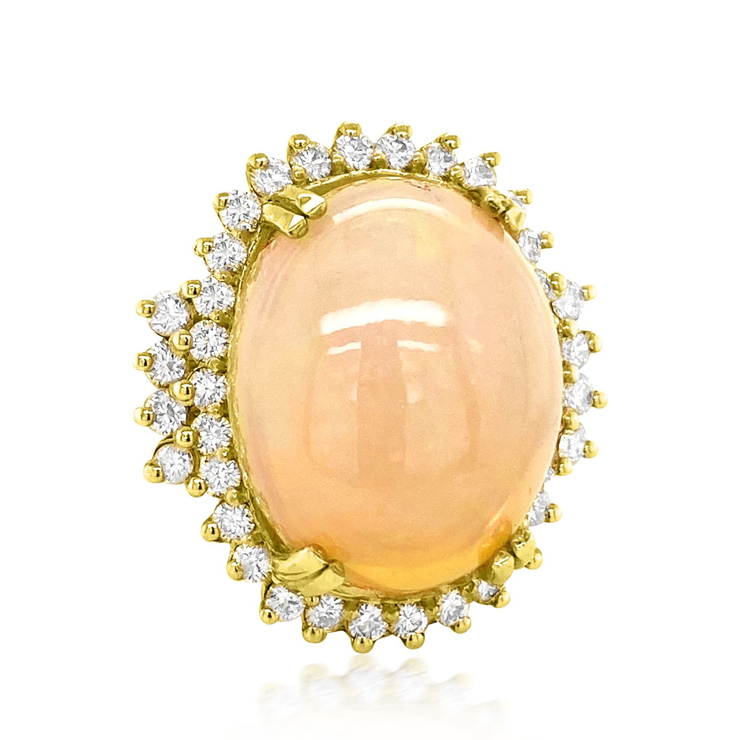 20.6ct Natural OPAL 14K Yellow Gold 14.7gm Diamond 1.5ct Ring #PJ16850