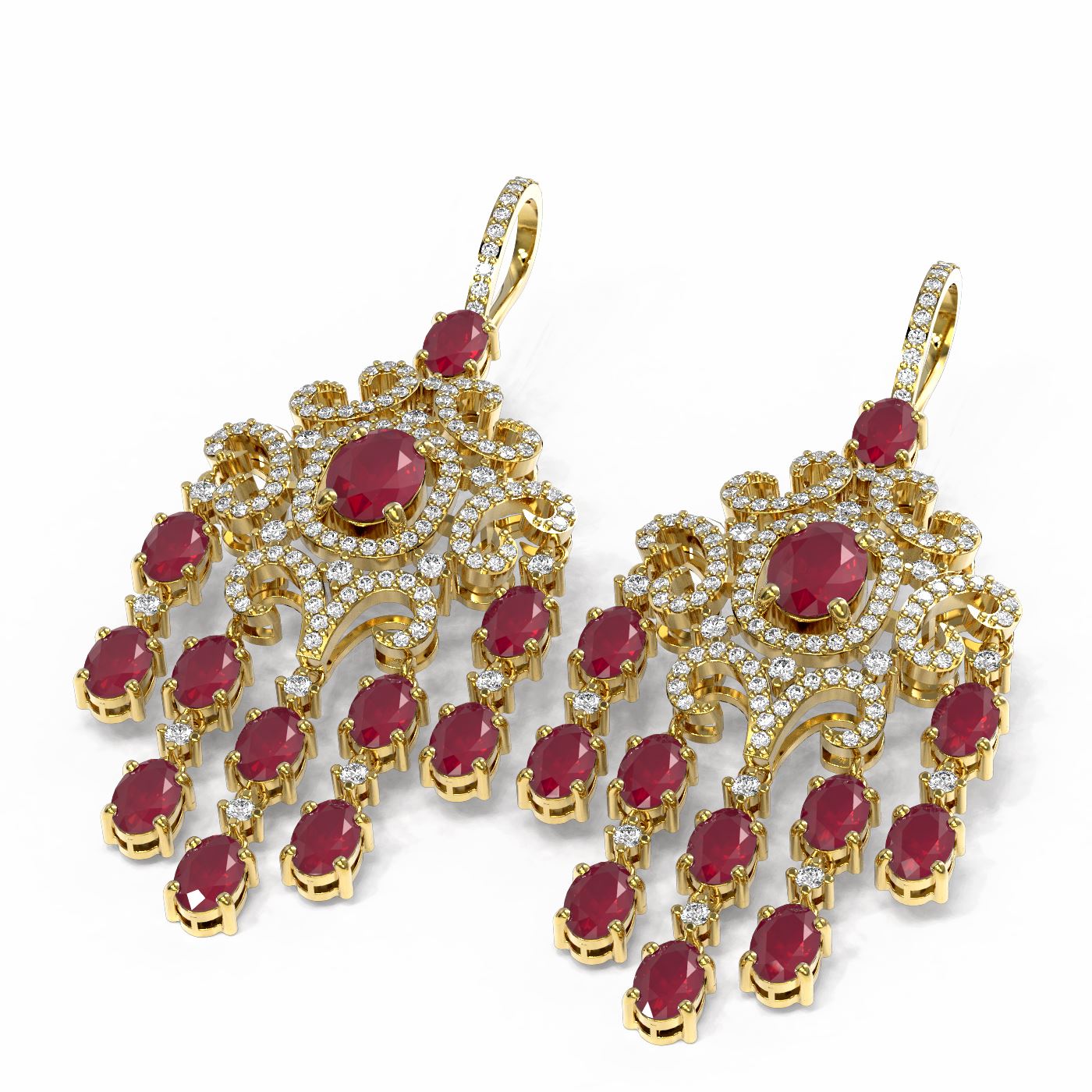 REF-527R3K - SKU: 52983 ---- 20.7 ctw Ruby & Diamond Earrings 18K Yellow Gold