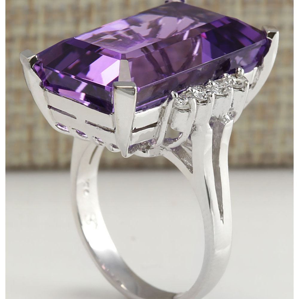 20.85 CTW Natural Amethyst And Diamond Ring In 14K Solid White Gold