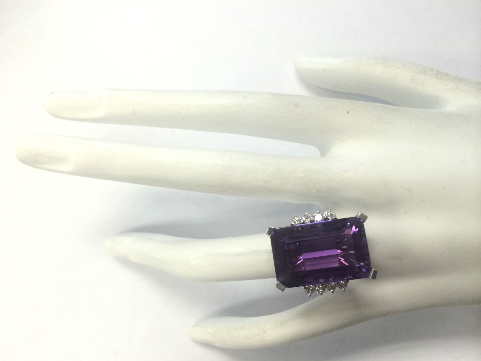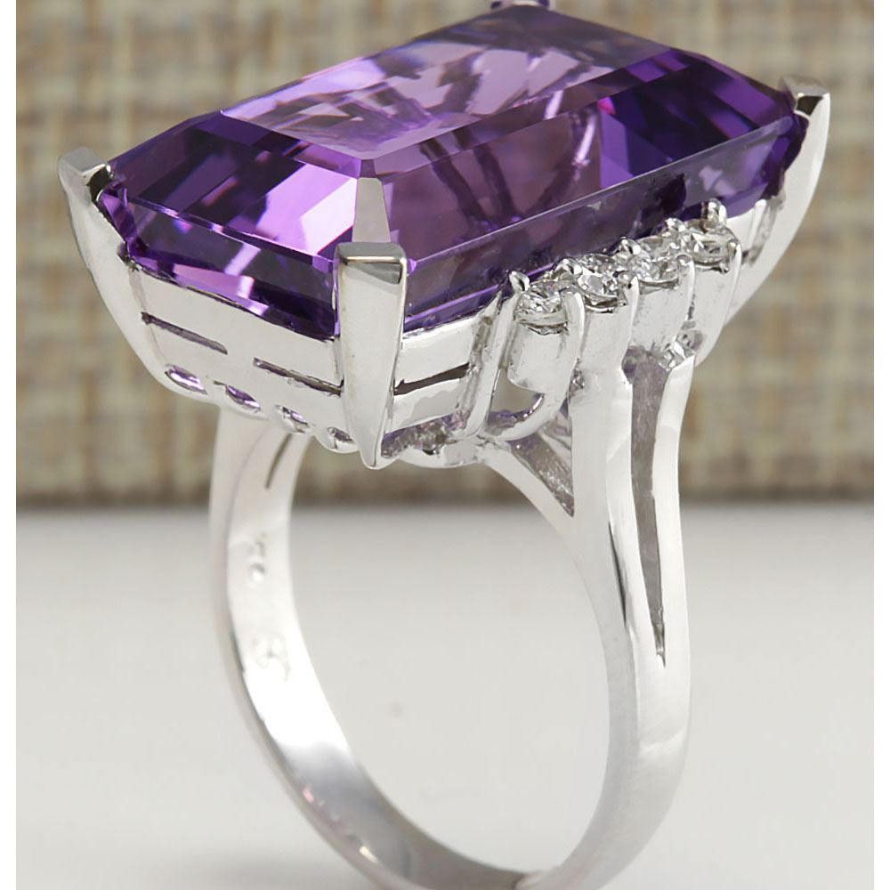 20.85 CTW Natural Amethyst And Diamond Ring In 18K Solid White Gold