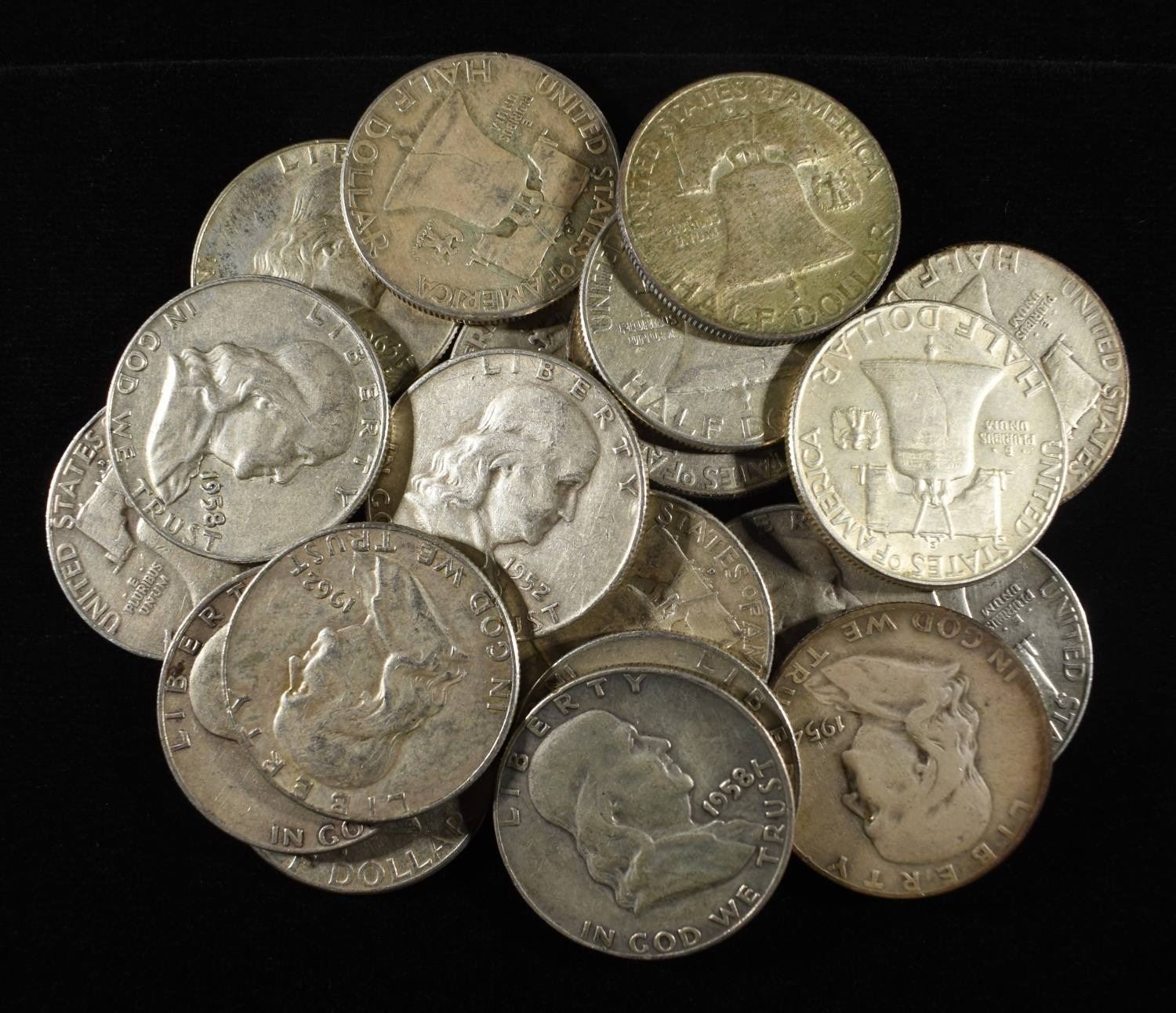 (20) 90% SILVER FRANKLIN HALF DOLLAR