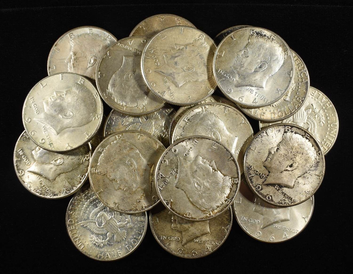 (20) 90% SILVER KENNEDY HALF DOLLARS