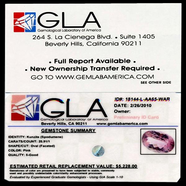 Excellent clear pink specimen oval cut; lab quality evaluation 5; typical treatment likely; Gem Guide wholesale $941-$1777; full retail appraisal $5228; full lab evaluation available