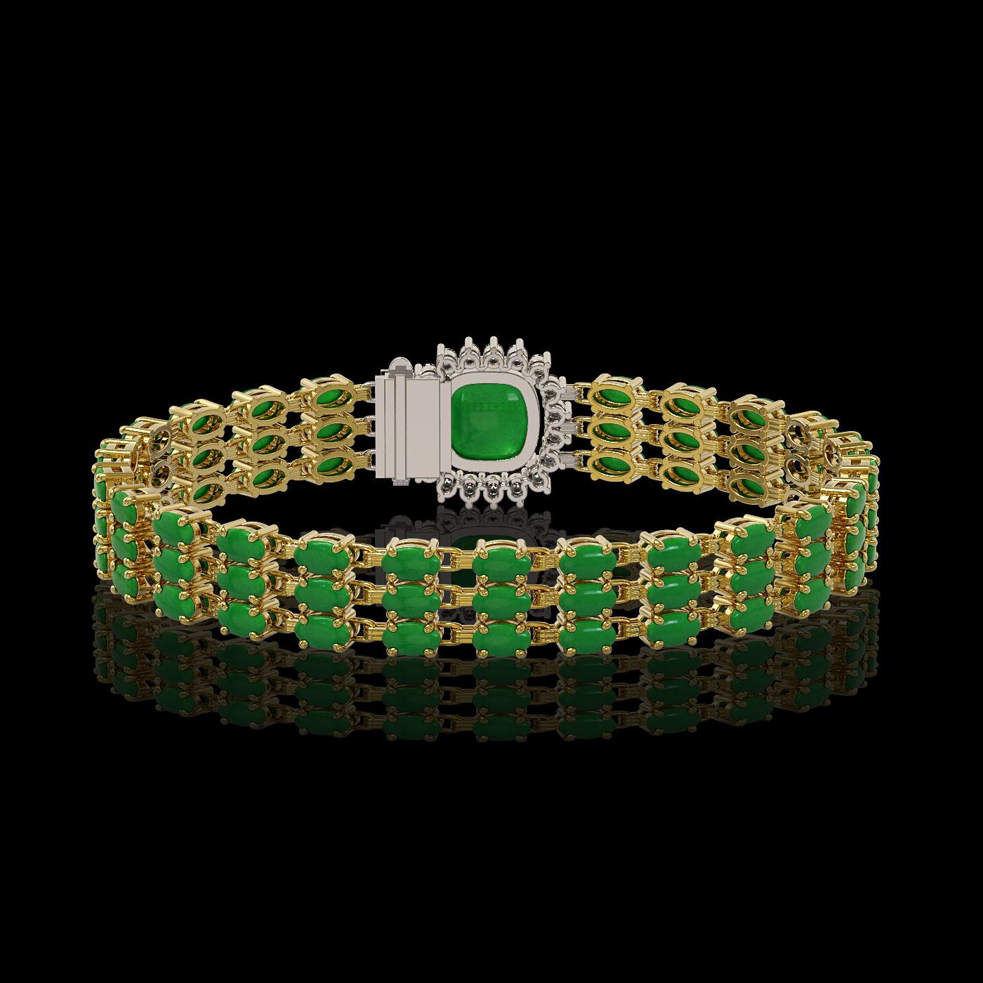 REF-281A8N - SKU: 45934 ---- 20.93 ctw Jade & Diamond Bracelet 14K Yellow Gold