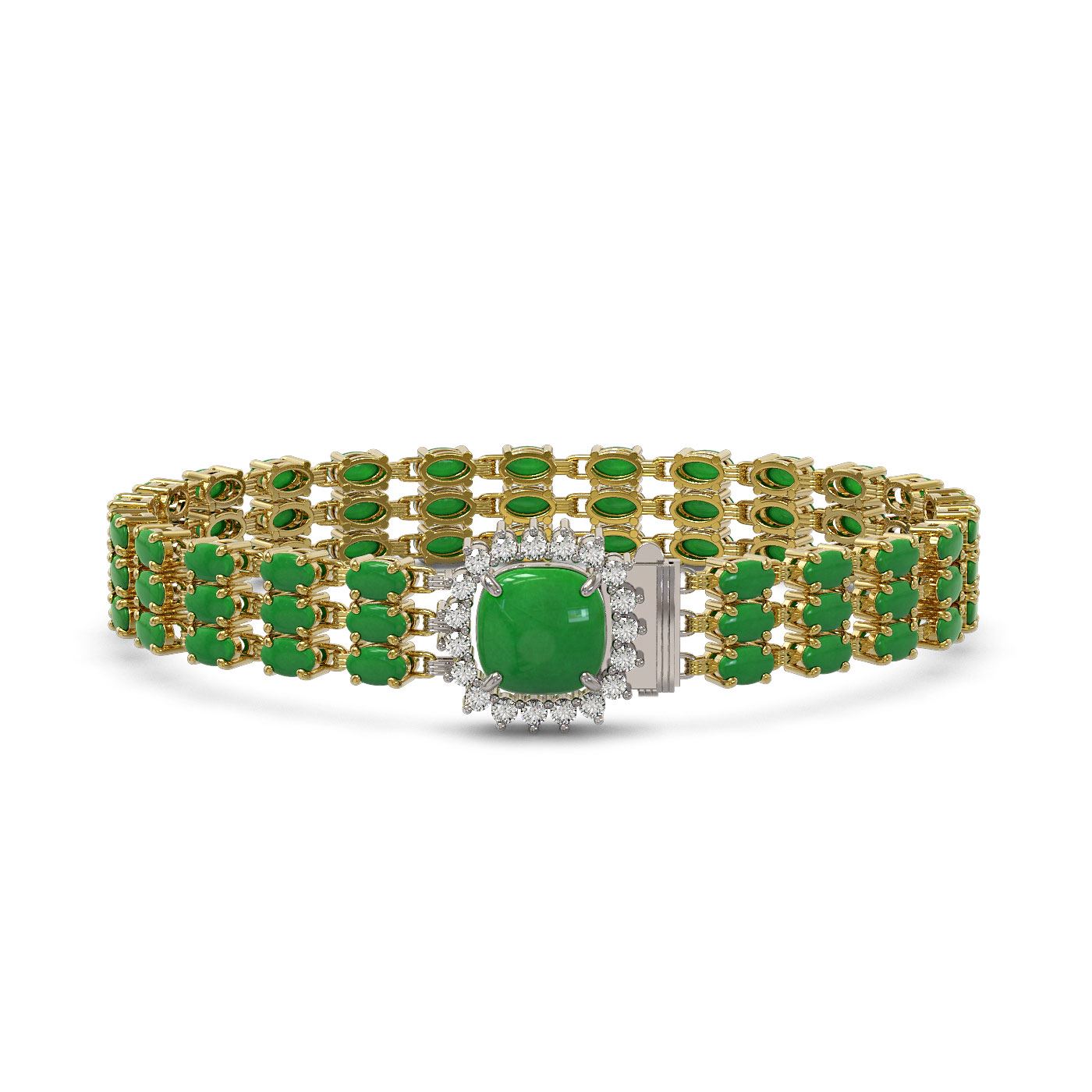 SKU: 45934 ---- 20.93 ctw Jade & Diamond Bracelet 14K Yellow Gold