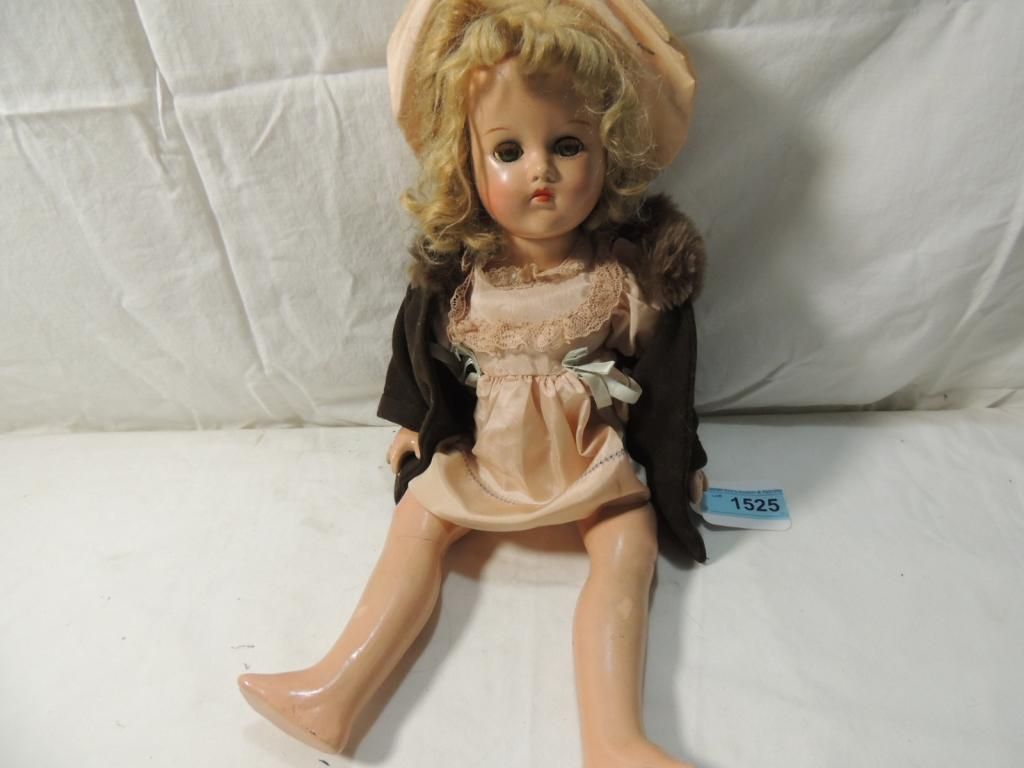 GOOD CONDITION. RARE COLLECTIBLE. COMPOSITION DOLL. COLLECTORS DREAM. BEAUTIFUL DRESS. AS SHOWN. SEE PHOTO FOR MORE DETAILS.