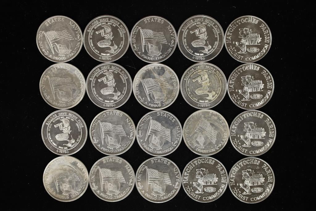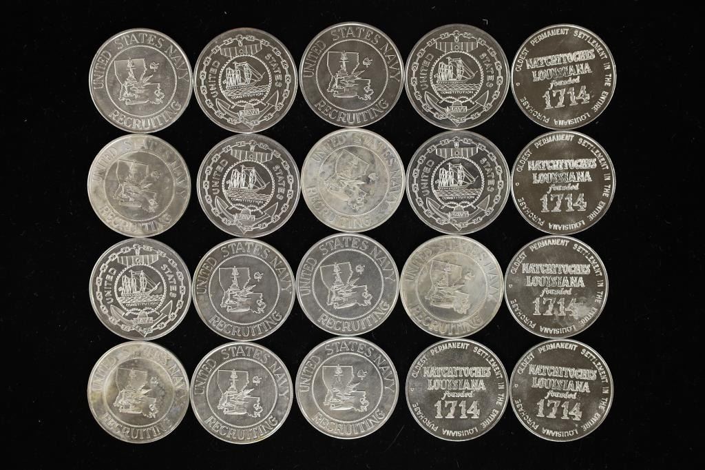 RECRUTING, 5-1975 US NAVY "SAILORS HAVE MORE FUN" AND 5-NATCHITOCHES PARISH TOKENS