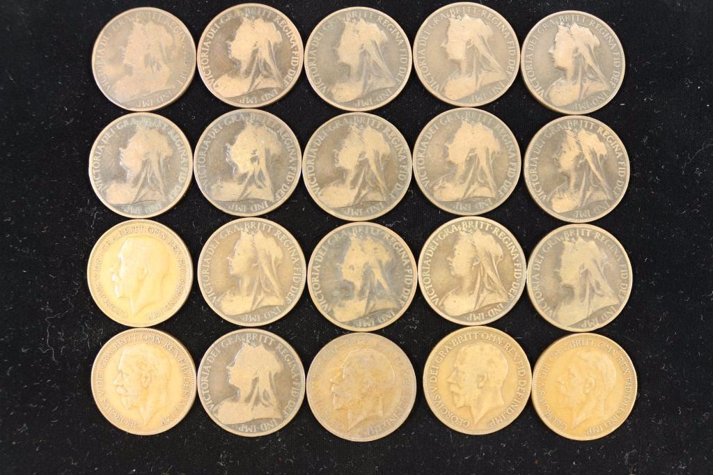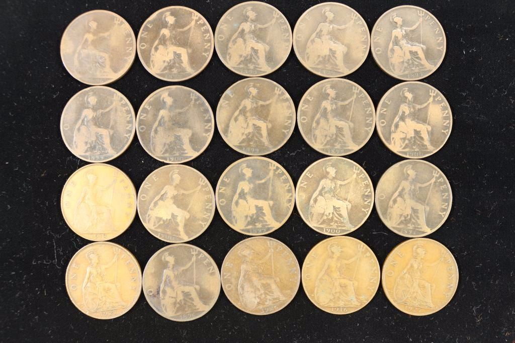 20 ASSORTED 1896-1927 GREAT BRITAIN LARGE PENNIES