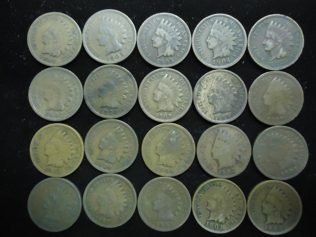 20 ASSORTED 1900'S INDIAN HEAD CENTS