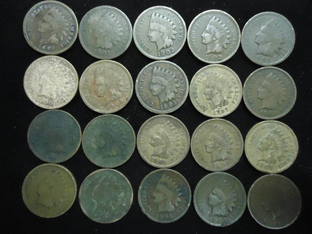 20 ASSORTED 1900'S INDIAN HEAD CENTS