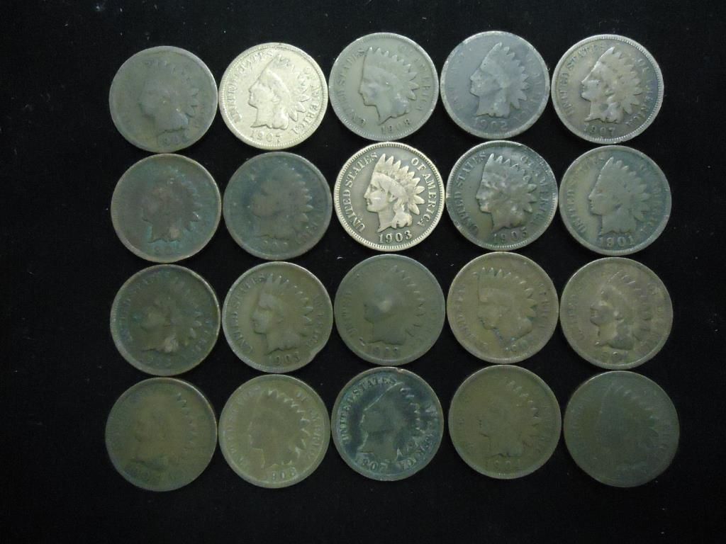 20 ASSORTED 1900'S INDIAN HEAD CENTS