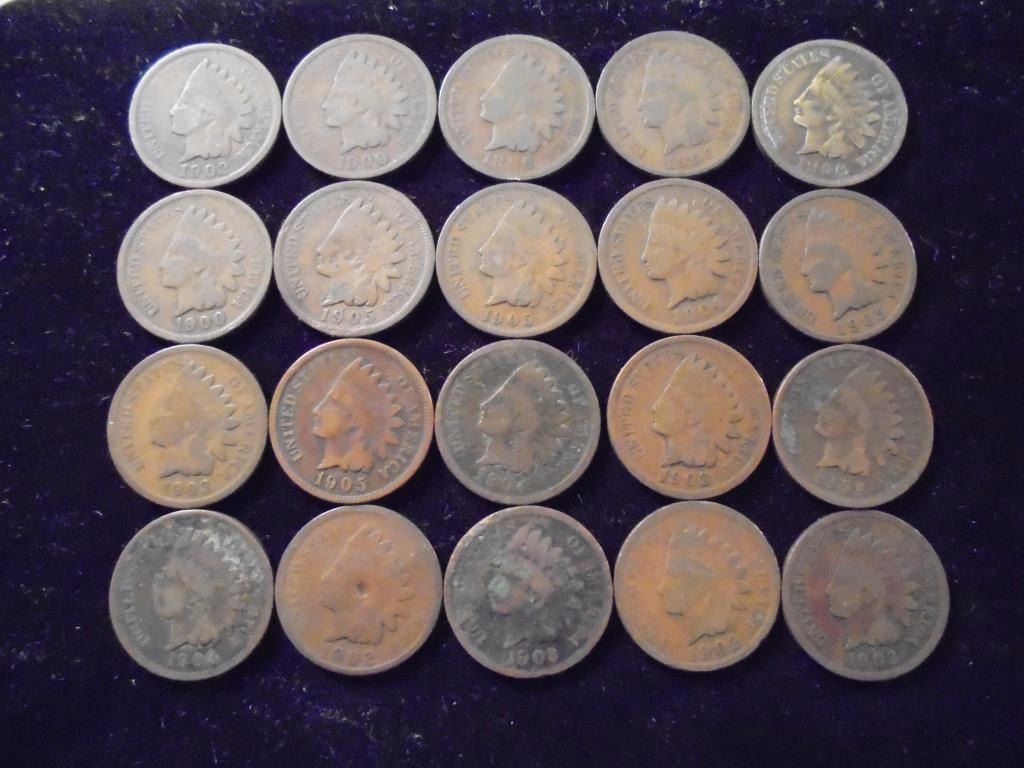 20 ASSORTED 1900'S INDIAN HEAD CENTS
