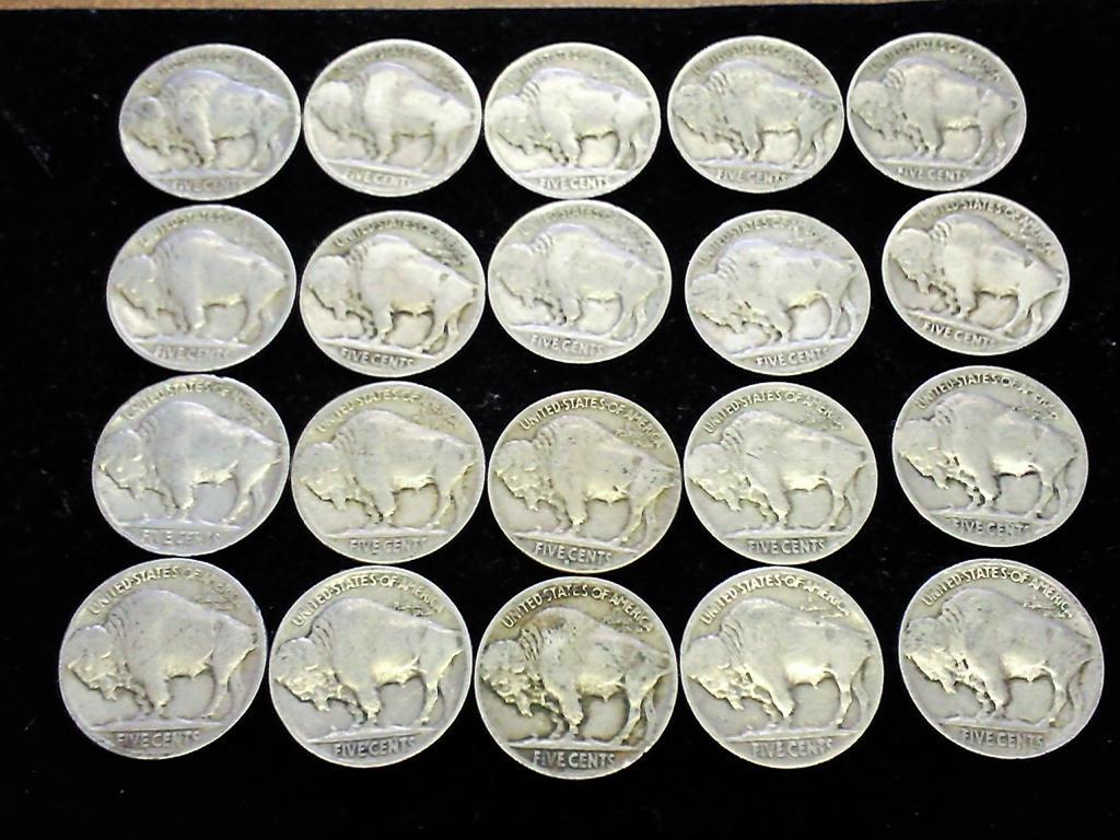 20 ASSORTED 1920'S BUFFALO NICKELS