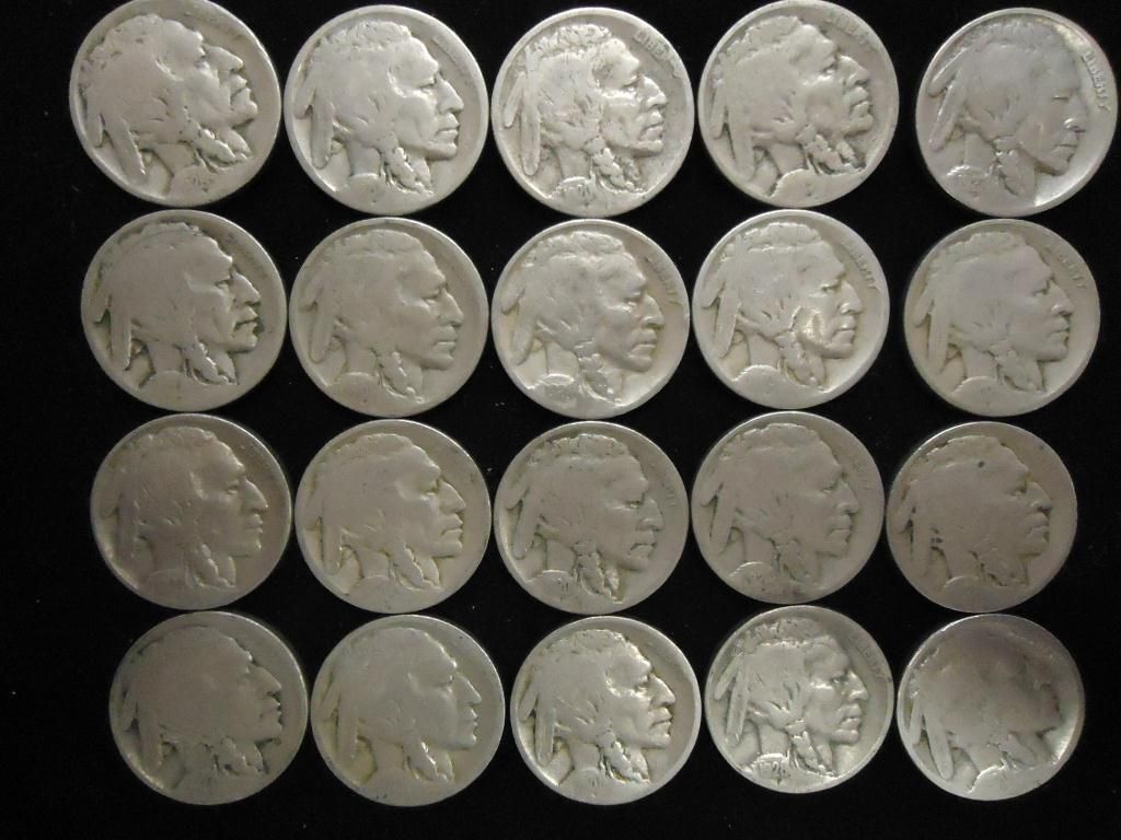 20 ASSORTED 1920'S BUFFALO NICKELS