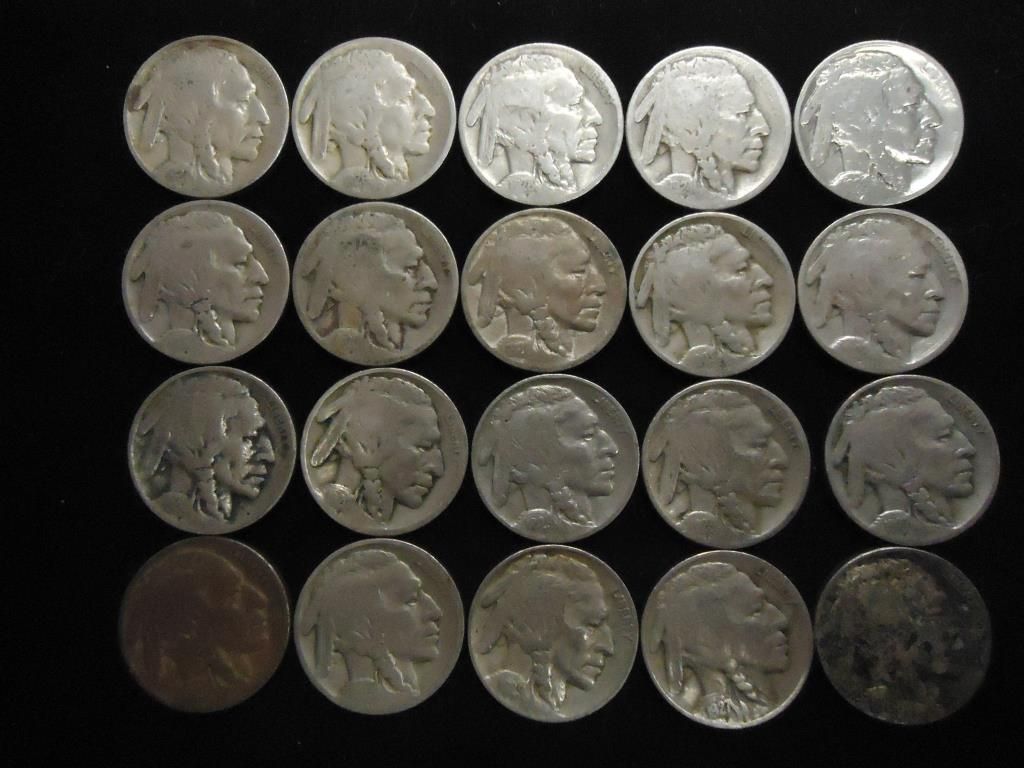 20 ASSORTED 1920'S BUFFALO NICKELS