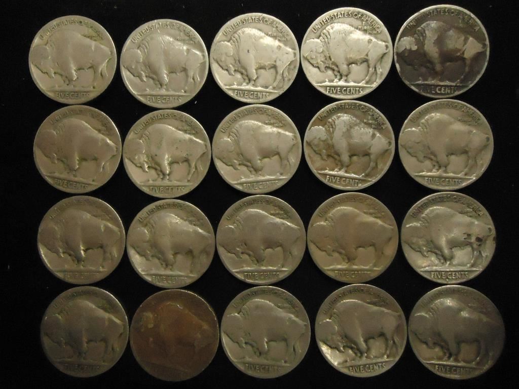 20 ASSORTED 1920'S BUFFALO NICKELS