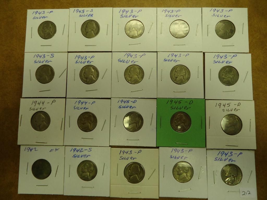 20 ASSORTED 35% SILVER JEFFERSON WAR NICKELS