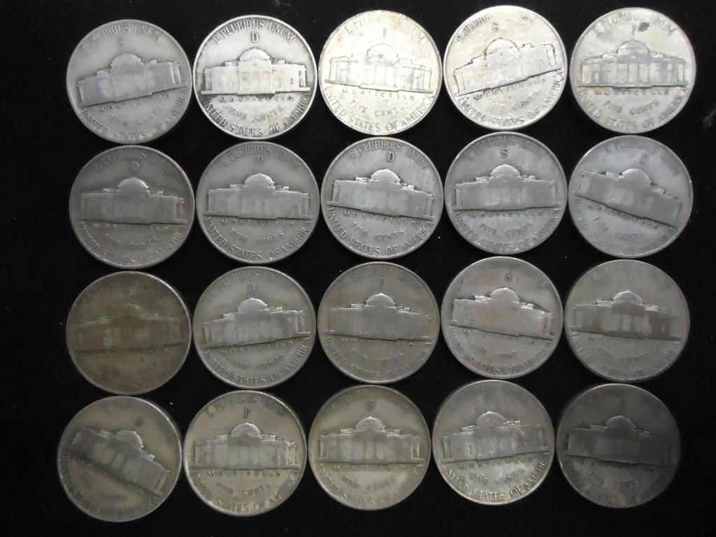 20 ASSORTED 35% SILVER JEFFERSON WAR NICKELS
