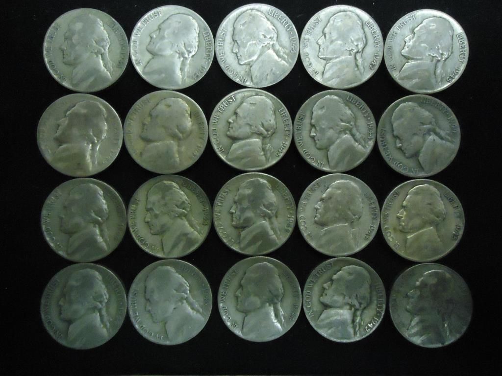 20 ASSORTED 35% SILVER JEFFERSON WAR NICKELS